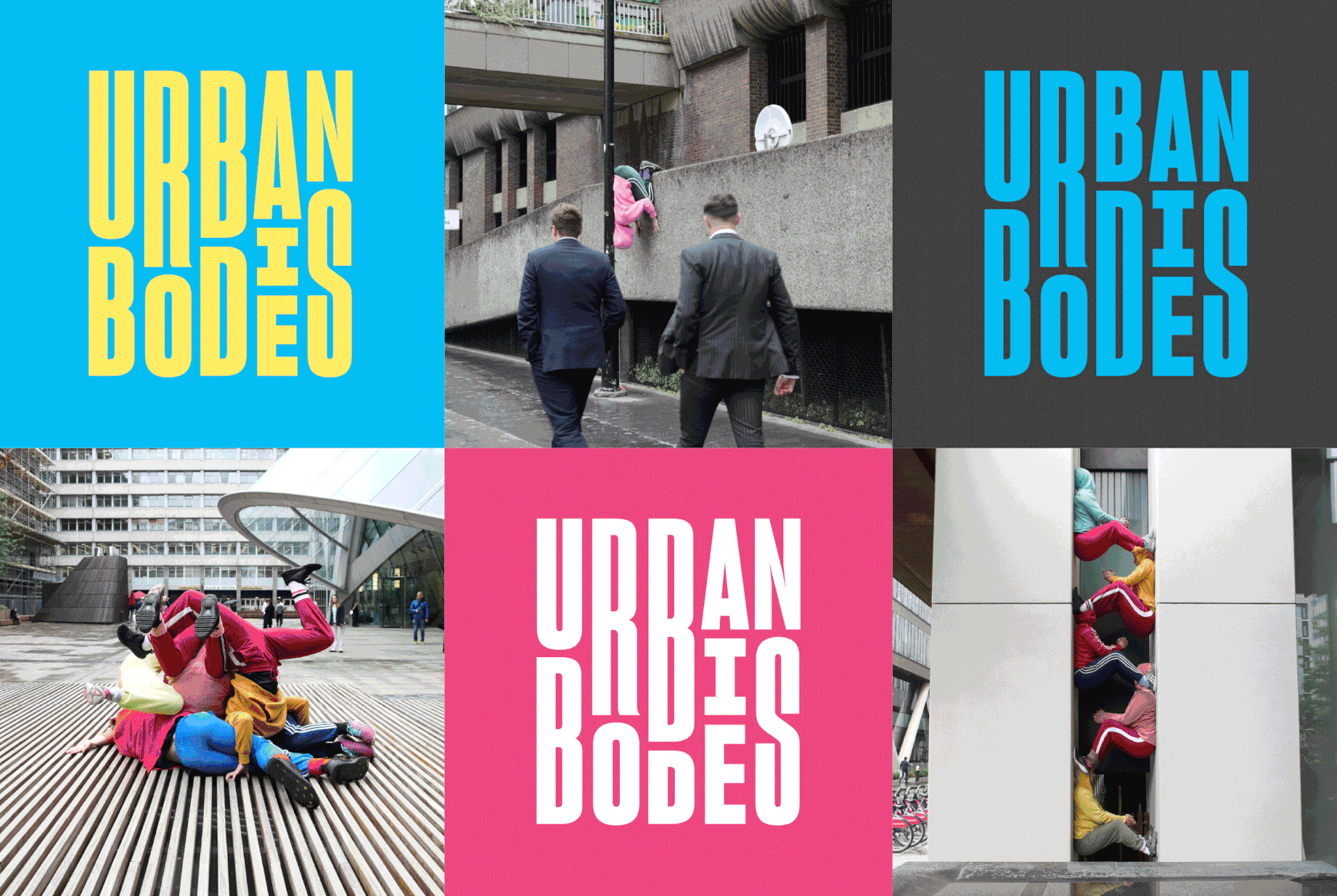 Visual design and promotional materials for an exhibition documenting the urban performances of artist and choreographer Willi Dorner